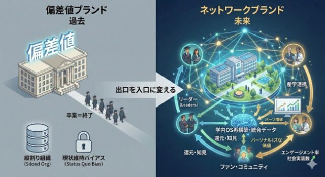志願者数や偏差値だけでなく、「卒業生のエンゲージメント率」や「産学連携による社会実装数」を経営の指標に据えるべきです。