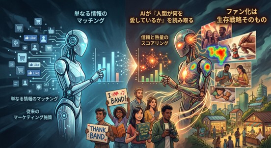 現在のアルゴリズム(AI)は単なる「情報のマッチング」から「信頼と熱量のスコアリング」へと進化しています。AIが「人間が何を愛しているか」をデータから読み取るようになった今、ファン化(卒業生のファン組織化等)は単なるマーケティング施策ではなく、生存戦略そのものになっています。